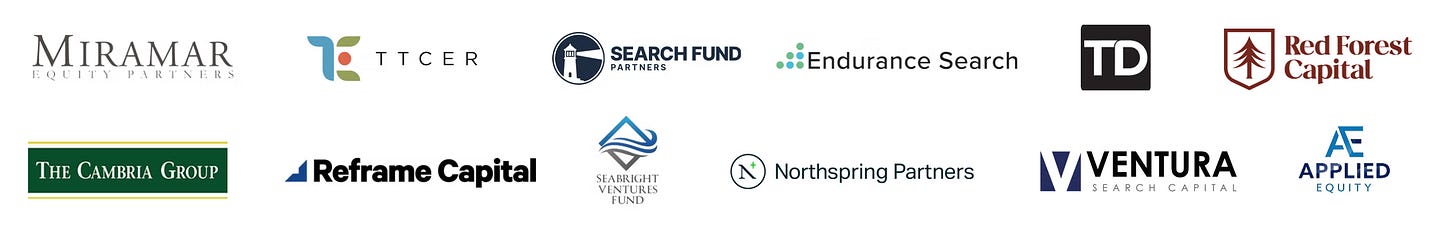 위크데일의 인수 기업 물색 과정을 지원하는 투자자 라인업도 인상적입니다. 서치펀드의 전설로 불리는 아슈리온(Asurion)의 케빈 타윌(Kevin Taweel)을 시작으로, Miramar Equity, Search Fund Partners, Red Forest Capital 등 서치펀드 전문 투자사들과 전직 CEO 출신 엔젤 투자자 10명 이상이 쿠날의 펀드 투자자로 참여하였습니다.