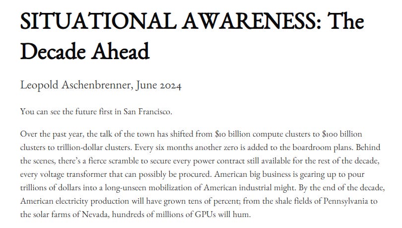 펀드를 이끄는 레오폴드 아셴브레너(Leopold Aschenbrenner)는 전문적인 투자 경험이 없는 AI 연구원 출신입니다. 컬럼비아 대학을 19세에 수석 졸업한 후 옥스퍼드에서 경제성장 이론을 연구하고, 오픈AI의 '슈퍼얼라인먼트' 팀에서 AGI(Artificial General Intelligence) 안전성을 연구했던 아센브레너는 2024년 무려 165페이지 분량의 에세이 "Situational Awareness: The Decade Ahead"를 공개하며 일약 스타로 등극하였죠. 그리고 해당 분석에서 제시한 AI 시대의 구조적 변화 이론을 바탕으로 헤지펀드를 시작, 1년도 안되어 2조 원에 가까운 자산을 운용하게 되었습니다.