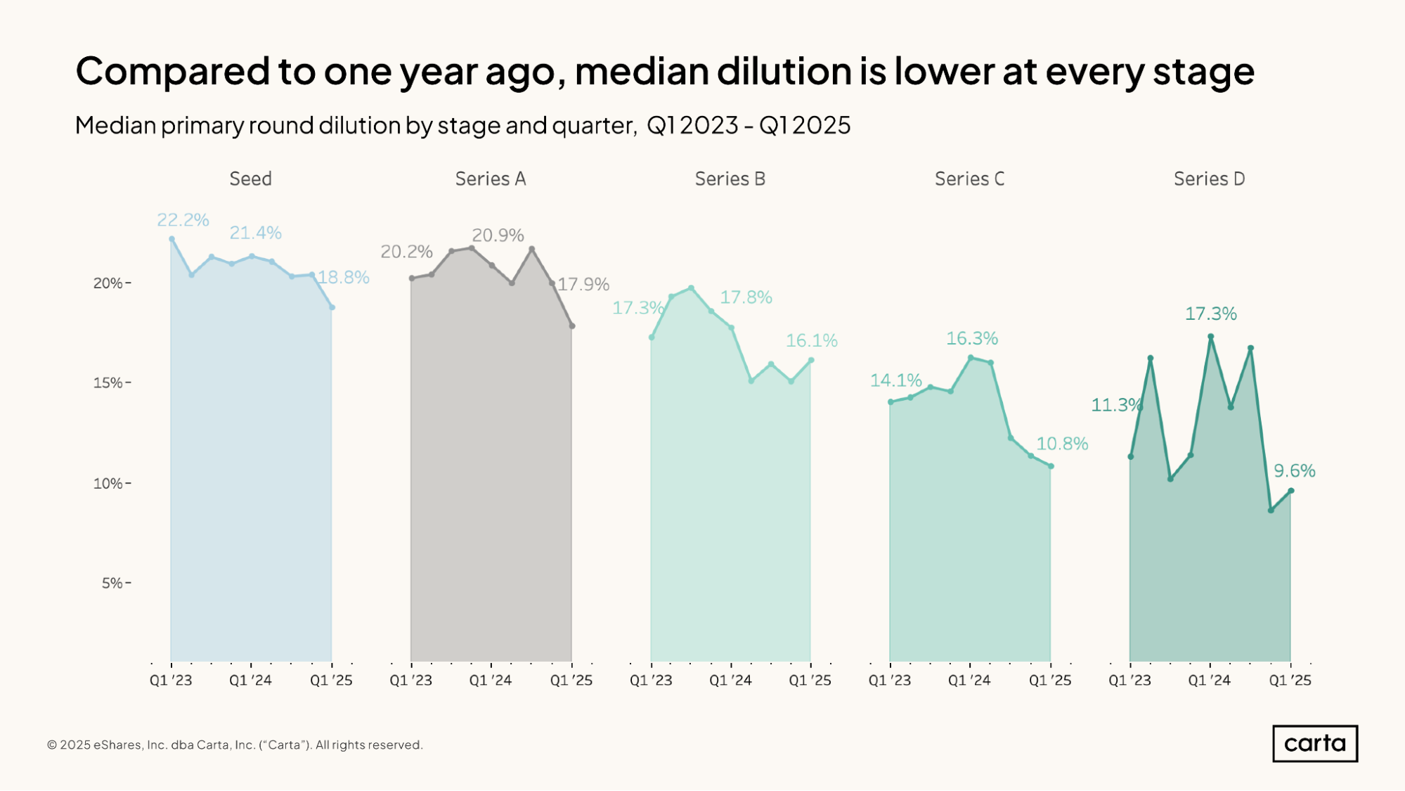 시리즈 D 희석률은 절반 수준으로 감소 - 2025년 1분기에는 10% 이하로 떨어졌으며, 이는 투자자들이 유망한 기업에 투자하기 위해 더 적은 지분으로도 만족하고 있음을 보여줌.