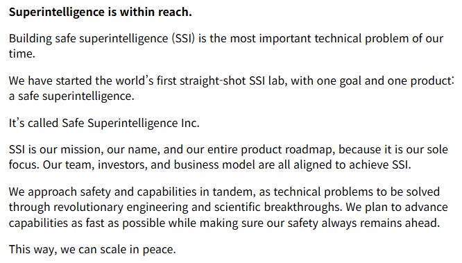 메타는 일리야 서스케버(Ilya Sutskever)가 창업한 세이프 슈퍼인텔리전스(Safe Superintelligence)를 인수하려 했으나 거절당함. 이후 공동 창업자이자 투자자인 다니엘 그로스(Daniel Gross)와 냇 프리드먼(Nat Friedman)을 메타에 직접 영입함세이프 슈퍼인텔리전스는 메타와의 협상에서 독립성 유지 선택