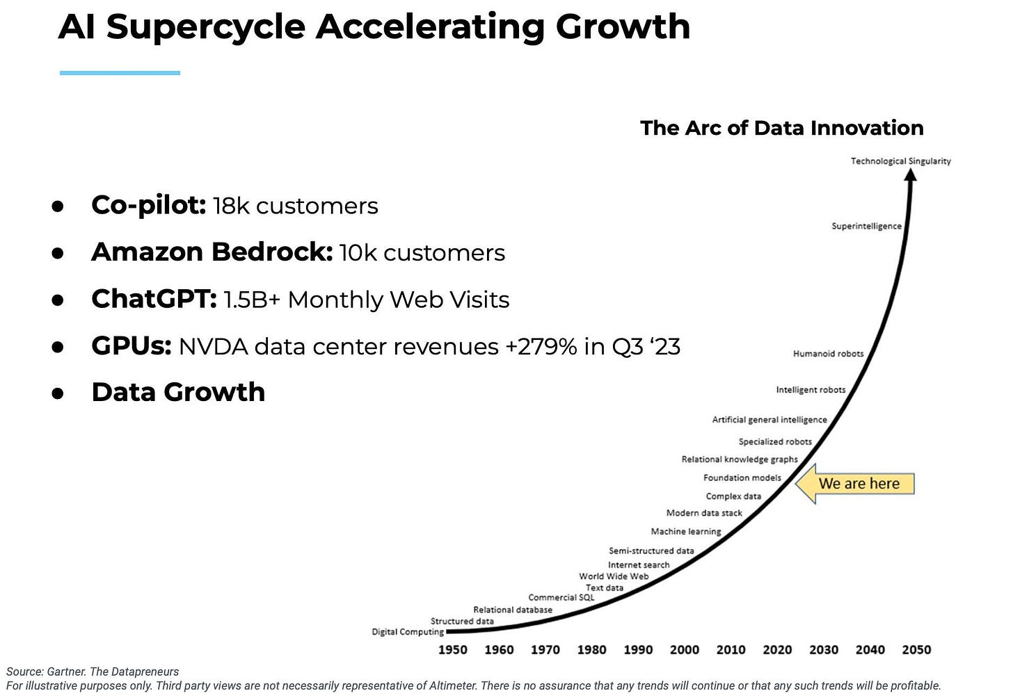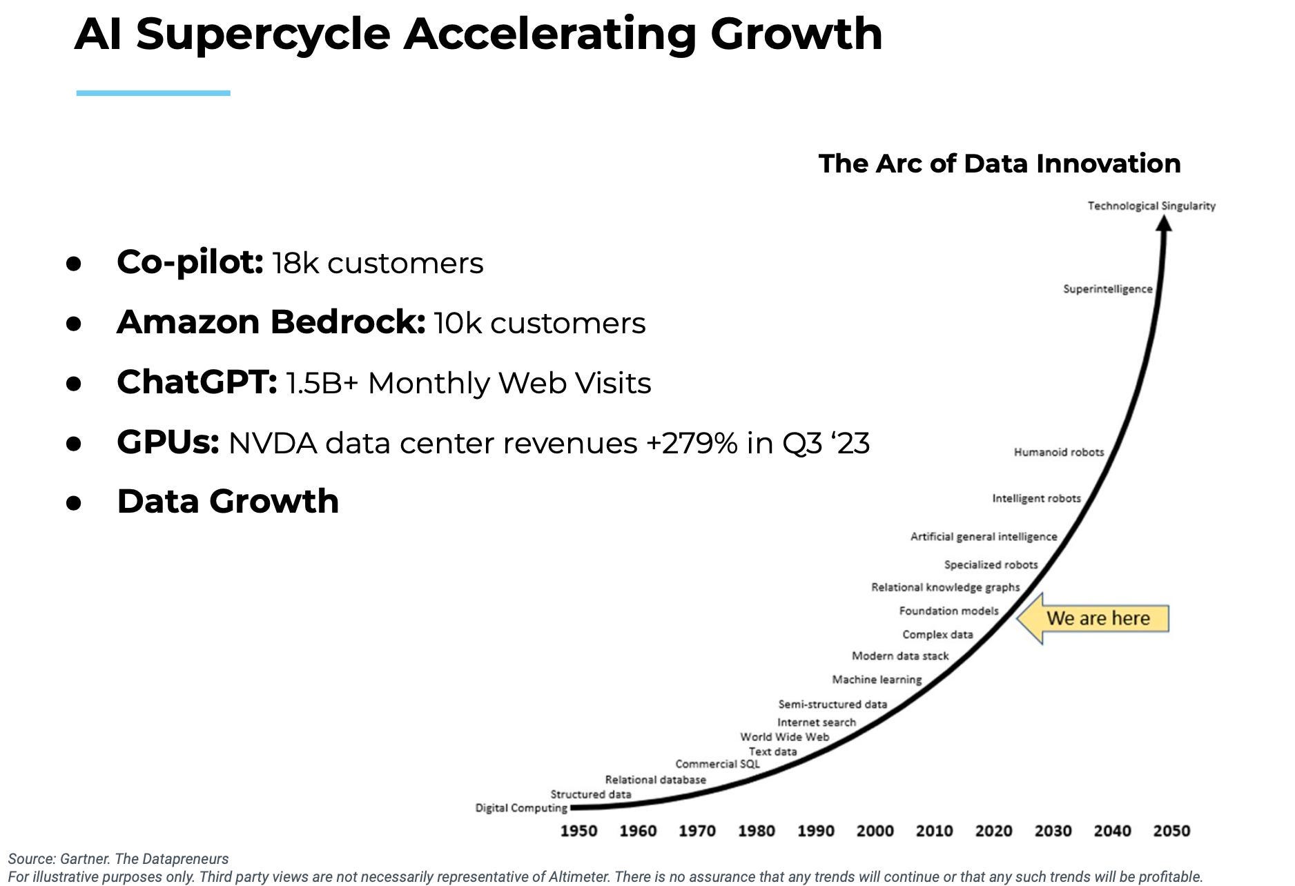 기술주 중심 헤지펀드와 비상장 벤처 펀드를 함께 운용하는 알티미터 캐피탈 (Altimeter Capital)의 브래드 거스트너 (Brad Gerstner)는 대표적인 기술 슈퍼사이클 강조론자입니다.
