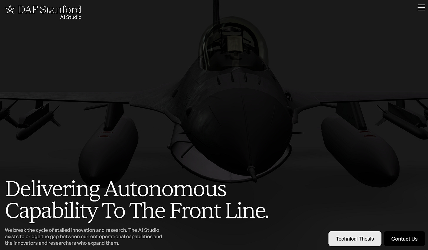 미국 전쟁부 산하 공군성(Department of the Air Force, DAF)은 스탠포드 공과대학 내에 DAF-Stanford AI Studio라는 조직을 운영하고 있습니다. AI와 자율시스템 기술을 실전에 전환하기 위한 연구·전략 거점으로, 동부의 MIT AI Accelerator가 기초연구와 인력 양성에 초점을 맞추는 것과 달리, 스탠포드의 이 조직은 실리콘밸리 생태계와의 접점에서 자율 비행, 시뮬레이션, 엣지 컴퓨팅이라는 세 축을 중심으로 기술의 실전 투입을 가속화하는 역할을 담당합니다.