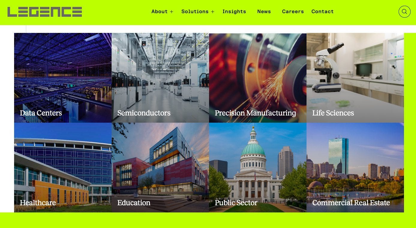 쉽게 말해, 레전스는 구글이나 마이크로소프트가 새로운 데이터센터를 지으려 할 때 필요한 모든 것을 제공하는 회사입니다. 어마어마한 전력을 공급할 전기 시스템, 발열하는 서버를 식힐 냉각 시스템, 각종 배관과 자동제어 시스템까지 포괄하죠. 더 나아가 기존 건물의 노후 설비를 에너지 효율이 높은 시스템으로 바꿔주는 개조(retrofit) 프로젝트도 수행합니다.