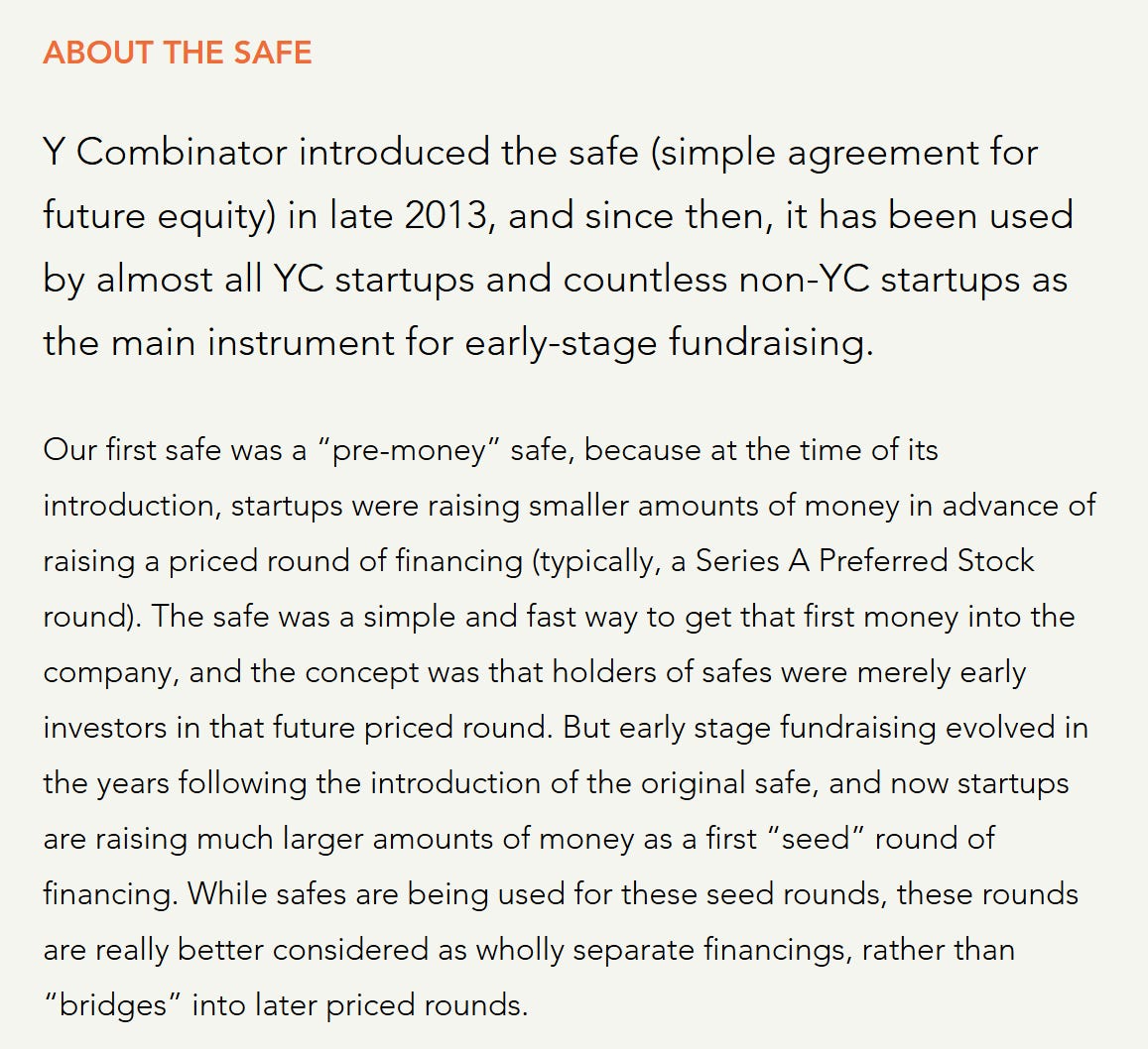 스타트업 생태계에 발을 들여놓았다면 누구나 한 번쯤은 들어봤을 법한 단어, 바로 SAFE이다. Simple Agreement for Future Equity의 줄임말인 SAFE는 실리콘밸리의 유명 액셀러레이터인 와이콤비네이터(Y Combinator)가 보다 신속한 스타트업 투자를 위해 2013년 처음 소개한 투자 계약 형태로 잘 알려져 있다.